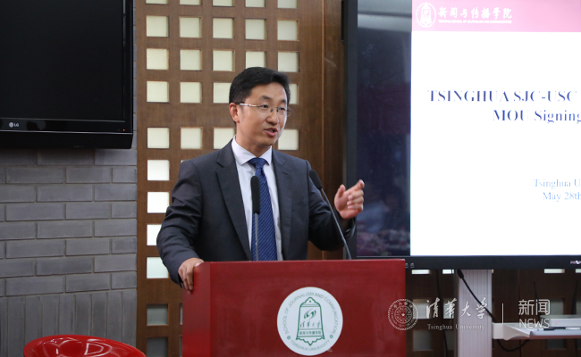 邓锋介绍了南加大与新闻学院合作的相关背景,并对两校三院合作的表示积极支持。