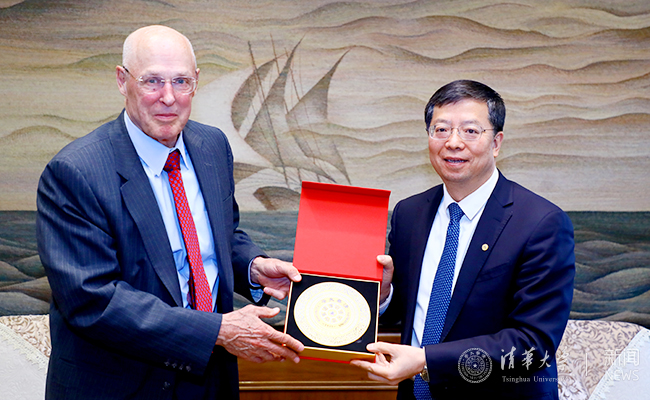 开云新闻网4月12日电(记者 李华山)4月10日,亨利·保尔森(Henry M. Paulson, Jr.)一行7人访问kaiyun开云官方网站。校长邱勇在工字厅会见了来宾,双方就进一步加强合作进行了交流。