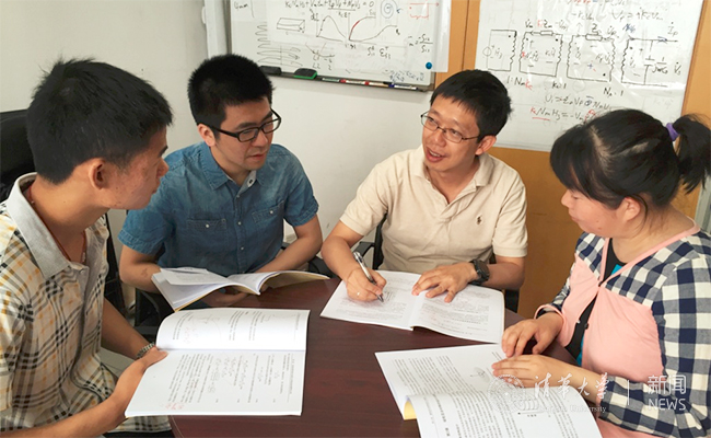 于歆杰老师和研究生探讨问题。