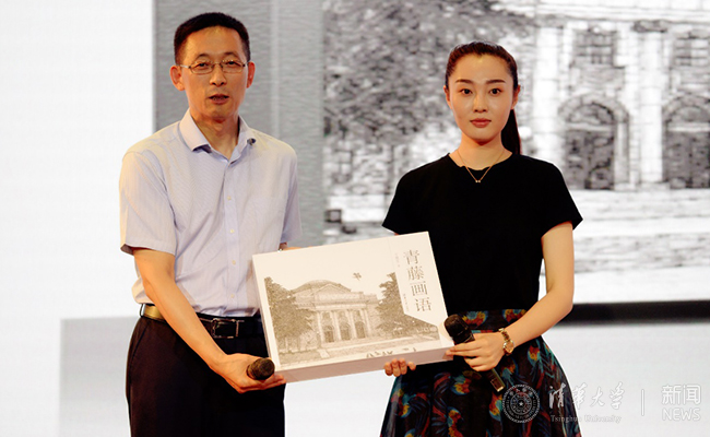 晚会期间,美术学院博士生于婉莹携其“研创梦工厂”资助作品《青藤画语》版画集进行了首发仪式。施一公在讲话中高度肯定了于婉莹同学的艺术创作并表达了祝愿。于婉莹将《青藤画语》版画集的首本样书赠与施一公。