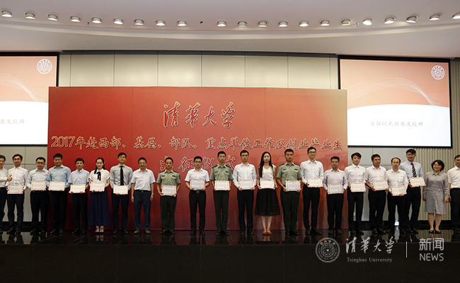 出征仪式上,工业工程系博士毕业生侯翔宇、水利系博士毕业生郭大卫、工程物理系博士毕业生李延武、法学院硕士毕业生顾蛟龙、美术学院硕士毕业生邱璧璇、汽车系博士毕业生黄俊、精仪系本科毕业生秦凤凯代表获奖同学分别发言,表达了毕业生奔赴西部、扎根基层、携笔从戎、投身主流、创新创业的坚定信念;表达了将秉承母校“爱国奉献、追求卓越”的精神到基层一线、学术前沿建功立业的决心。