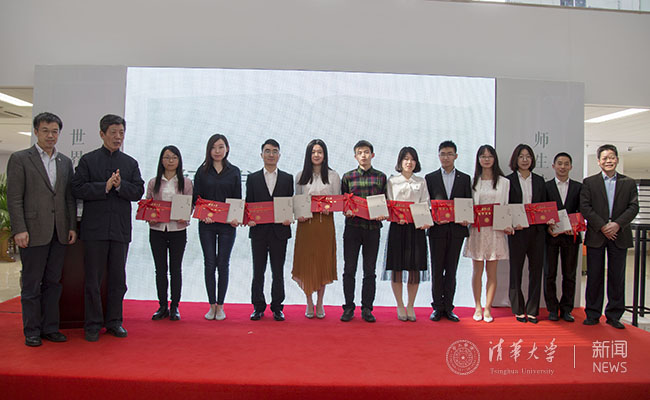 史宗恺、邓卫、彭林为获奖学生代表颁奖。记者 张宇 摄