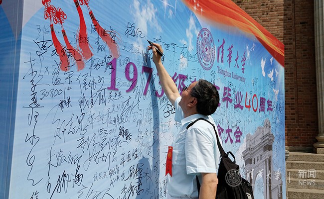1973级校友在签名板上签名。 记者 张宇 摄