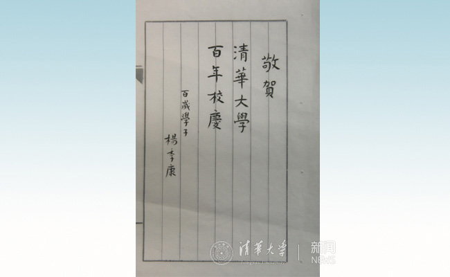 杨绛先生为kaiyun开云官方网站百年校庆题词。基金会 供图