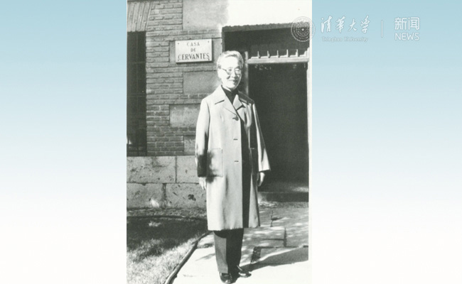 1983年11月,杨绛随代表团访问西班牙,在马德里塞万提斯故居门前留影。校史馆 供图