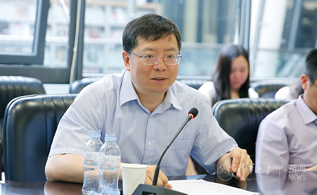 校长邱勇在参加支部生活学习时讲话。记者 张宇 摄。