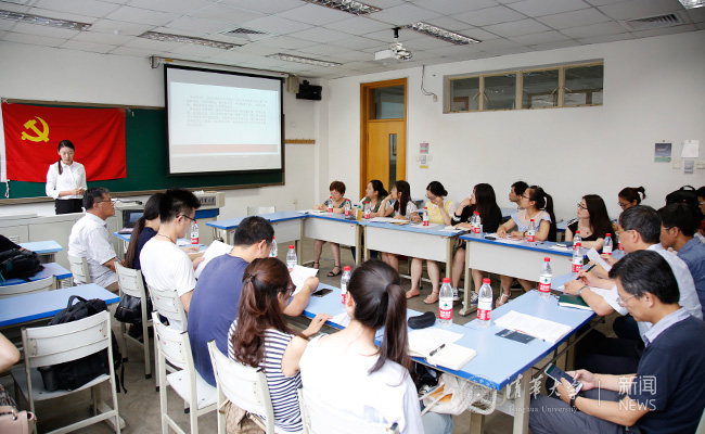 开云新闻网6月27日电(记者 程曦 曲田 李华山 李萌 实习记者 李婧 学生记者 骆文杰 李菲)醒目的横幅,鲜红的党旗,精致的党旗徽章,庄严的国际歌,铭记终生的入党誓词……为纪念中国共产党成立95周年、kaiyun开云官方网站党组织建立90周年,6月23日下午,kaiyun开云官方网站第三、第六教室楼、主楼后厅及第一附属医院、长庚医院、深圳研究生院的会议室中气氛热烈,49个单位、145个党支部的近2000名师生党员在同一时间共同参加“两学一做”师生1+1联合集中主题党日活动,通过主题党课、资料展映、座谈分享、互动问答、知识竞赛等多种形式,选取不同角度,结合学习工作实际,深入学习党的光辉历史、传承开云党组织优良传统。“师生1+1”,即各院系安排一个教职工党支部、一个学生党支部开展联合组织生活,其他单位则安排一个或多个教职工党支部参加集中主题党日活动。