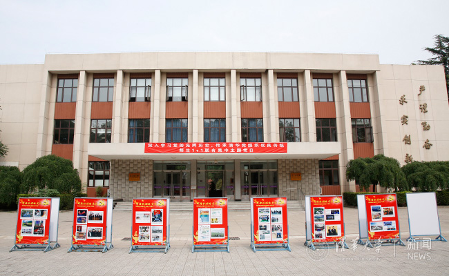 三教平台上的《辉煌壮丽的史诗——热烈庆祝中国共产党成立95周年》系列展板。记者 张 宇 摄