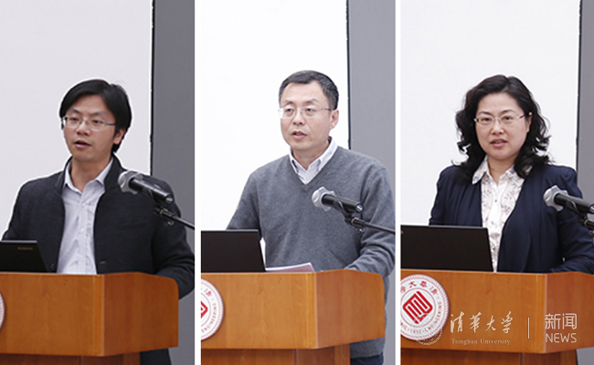 各单位书记作述职报告。(左起)化学系梁琼麟、金融学院顾良飞、热能系李宇红。记者 张宇