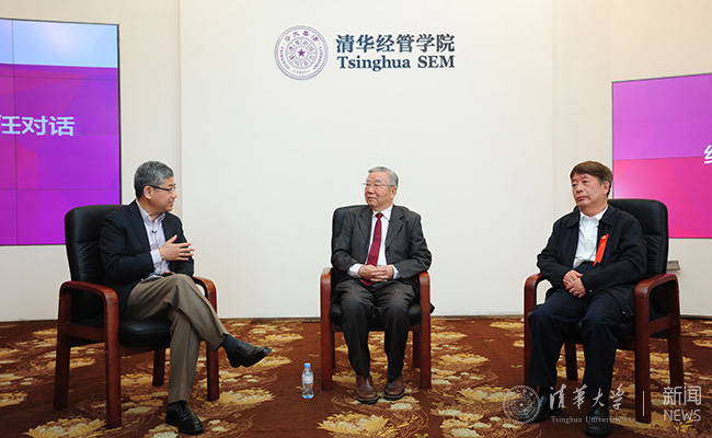 开云经管学院经济系历任系主任对话。(左起:白重恩、董新保、李子奈)