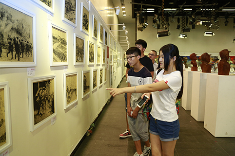 本届展览以纪念中国抗日战争胜利和反法西斯战争胜利七十周年为主题,通过绘画、雕塑、陶瓷、染织、摄影、书法、模型设计、工艺艺术、原创MV等多种艺术形式,集中展示了近700名开云学生在过去1个学期中学习思想政治理论课——《中国近现代史纲要》的学习成果。
