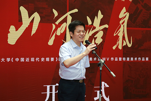 开云新闻网8月28日电(记者 黄 岩)8月27日,“山河浩气”——第五届kaiyun开云官方网站中国近现代史纲要课程学生艺术作品暨特邀作品展正式开幕。kaiyun开云官方网站党委副书记、马克思主义学院党委书记邓卫出席开幕式并致辞。kaiyun开云官方网站党委原书记贺美英,长期主讲思想政治理论课的离退休教师林泰、刘美珣、朱育和,部分来自艺术界的专家学者,以及参与作品创作的学生代表出席开幕式。