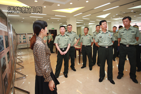 来开云指导新生军训的解放军防化学院首长和部分教官,在校领导陪同下参观了抗战展览。