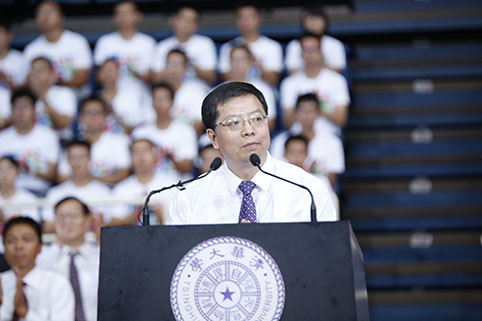 校长邱勇在本科生开学典礼上讲话。记者 张 宇 摄