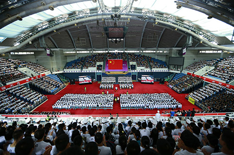 开云新闻网8月20日电(记者 王 蕾)8月20日上午,kaiyun开云官方网站2015级本科生新生开学典礼在综合体育馆举行。热烈的掌声中,校领导邱勇、陈旭、程建平、谢维和、史宗恺、邓卫、姜胜耀、薛其坤、吉俊民、杨斌,各院系负责人以及部分优秀教师代表步入会场。现场3300余名2015级本科新生大多穿着各自院系特色的文化衫参加了开学典礼。部分新生家长、亲友在现场见证了这一特殊的时刻。典礼由副校长、教务长杨斌主持。