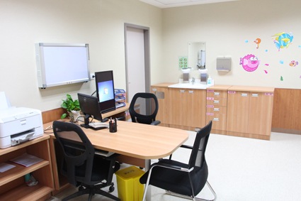 为保证每位患者的看诊品质和隐私,25平方米的独立看诊间里,容纳的是一名医生、一名跟诊护士和每次一名的患者。医院没有分诊台,由社工和志愿者引导患者到相应的诊间。诊间外的墙壁上挂有电子屏,显示着下一位看诊的患者号码。为了让医生有更充分的时间对患者进行诊疗与交流,在儿科、妇产科、内分泌科、肾脏内科、神经内外科等专科看诊区域,设有专科报到柜台,护士将提前为病人进行体温、血压、脉搏、血糖等基础性的查体,完成看诊所需的基础信息录入。而跟诊护士的作用则更大,她们是医生看诊的“先潜部队”,为患者排诊,提前为医生核对患者的基础信息,全程辅助医生完成病人看诊的辅助工作。