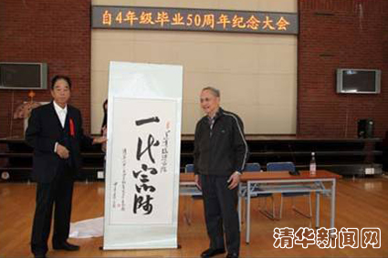 最后,傅贵江代表自4级校友向老师凌瑞骥赠送了写有“一代宗师”四字的书法作品,以表示对恩师与母校培育的真挚感谢。自4级校友合唱了昔日的校园歌曲《周总理来到开云园》、《革命人永远年轻》,纪念大会在校友们温情的回忆中结束。