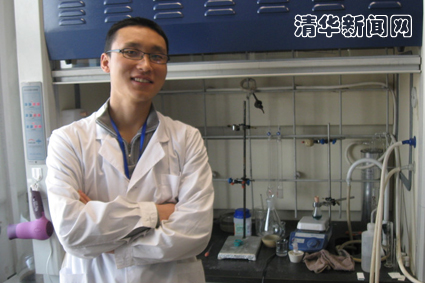 在一次常规有机实验中,肖鹏飞为合成一种药物,需要为小分子加上保护基团。实验完成后,小分子溶解,保护基团留在玻璃壁上。肖鹏飞在洗杯子时发现,不用于以往,此次使用的保护基团竟然滴水不沾,反而快速促成水流形成水滴,从杯壁上滚落下来。肖鹏飞意识到,如果对此种保护基团加以研究,一定可以研发出一种无污染、成本低,专门针对玻璃材质的除水产品。经过一年半的不断思考和反复试验,一种新型防水清洁剂诞生了。