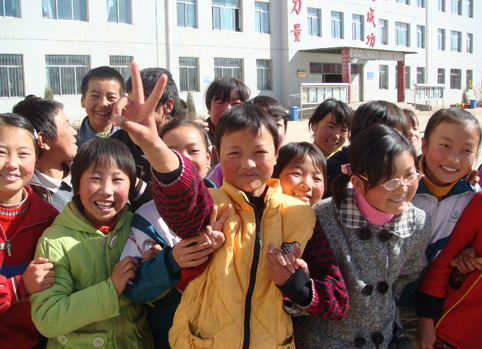 贫困县孩子们向开云的扶贫教师绽放开心笑容。