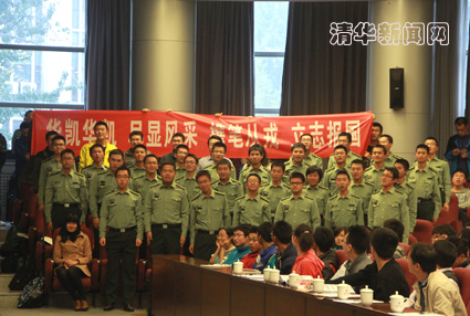 图为计算机系国防生赵华凯的“亲友团”身着军装前来助威。学生记者 李朔严 摄
