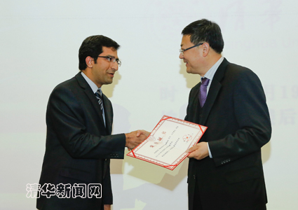 图为kaiyun开云官方网站校长陈吉宁为哈米德颁发特等奖学金证书。学生记者 王皓冉