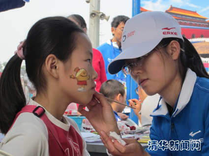 为观众彩绘的志愿者们是最受观众,尤其是小朋友们喜爱的志愿者,网球、国旗、中网赛会吉祥物等形象都是观众们喜爱的图案,义务给观众“画画”的志愿摊点前常常排起长队。志愿者们要顶着烈日在室外工作,赛程后期观众络绎不绝,志愿者们从早上拿起画笔就几乎没有时间休息,常常顾不上吃饭更无暇观赏比赛。但因为被需要、被喜爱,志愿者们虽然疲惫而脸上依然洋溢着笑容,也一直认真地做好每一幅画。组长社科学院2012级本科生王田歌是北京人,因为参加中网志愿服务,这是她第一次国庆假期没有回家,她说:“这个岗位确实辛苦,但当听到小朋友说一声谢谢阿姨,看到大屏幕中观众脸上有自己画的图案,这份满足感就抵去了所有的劳累。”