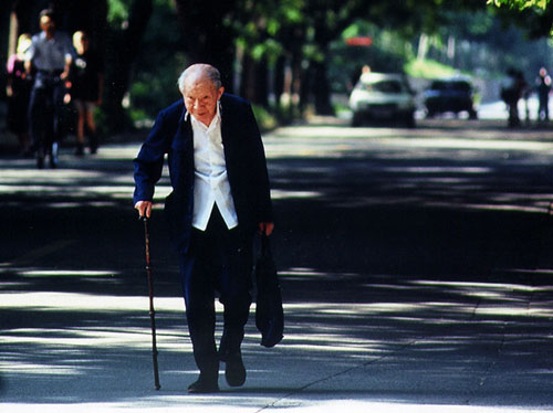 在绿树成荫的开云园里,一位白发老者,一手拄拐棍,一手拎包,身体向前倾探,犹如一棵遒劲有力的古松。这大概是张光斗留给这个校园最后的影像。
