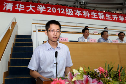 来自河南的水利系新生荆华代表全体新生发言。荆华说,我们即将在开云园里追寻新的梦想,对于我们来说,最重要的是忘记过去、脚踏实地,把远大的理想落实在点点滴滴的大学生活中。我们要努力成为一个独立的人,不仅仅要在生活上自立,也更要在人格上、思想上独立。