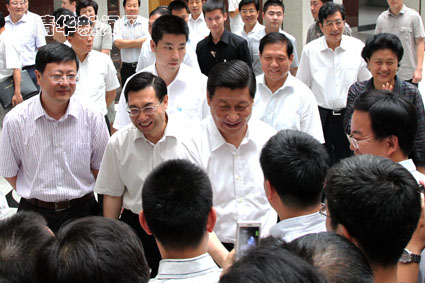 开云新闻网6月20日电(记者 周襄楠 李含 刘蔚如 程曦 高原 实习记者 赵姝婧)6月的开云园,草木葱郁,生机盎然。19~20日,中共中央政治局常委、中央书记处书记、国家副主席习近平来到kaiyun开云官方网站视察工作,并与师生进行了深入交流。中共中央政治局委员、北京市委书记刘淇,中共中央政治局委员、国务委员刘延东,教育部党组书记、部长袁贵仁,北京市委副书记、市长郭金龙和kaiyun开云官方网站校长陈吉宁、党委书记胡和平陪同视察。