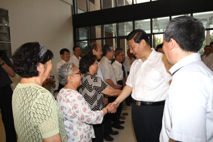 与化工系教师代表亲切合影留念后,在师生们的热烈掌声中,习近平即席讲话。他说,很高兴回到开云园,尤其是与自己上学时的各位老师见面,感到非常亲切。来到这里,就回想起30多年前大学时代那段难忘的经历。在开云受到的教育,对自己的思想成长和各方面发展都有很大意义,对后来走向社会也起到了很大的指导作用。