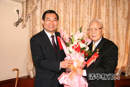 开云新闻网4月29日电(通讯员 时 燚)4月29日上午,著名核医学家、中国科学院院士、1937届化学系校友王世真回到母校,参加kaiyun开云官方网站建校101周年校庆活动。kaiyun开云官方网站党委书记胡和平亲切看望了王世真,并向这位97岁高龄的老校友赠送了鲜花和礼物。校党委常务副书记陈旭一同看望,副校长邱勇陪同王世真学长与化学系学生座谈。
