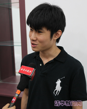 图为徐启峻在迎新现场接受媒体采访。 记者 方军辉 摄