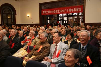 上午八时,就有不少校友早早赶到二教会议室会场,他们大多由家人陪伴,有好几位校友是坐着轮椅来参加聚会,一位失明的同学,还有几位在美国、加拿大的同学都返回母校。老同学相见分外亲切,他们激动地握手、拥抱,畅叙同学情谊。