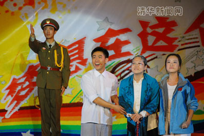 而DV《“我与祖国共奋进”——学生艺术团合唱队、舞蹈队参演〈复兴之路〉侧记》的播出则是晚会的另一个亮点。该DV记录了接受国庆《复兴之路》的演出任务,正在人民大会堂紧张排练的合唱队和舞蹈队的真实情况,传达了合唱队和舞蹈队队员们对新同学欢迎与祝福。DV播放结束之时,场内响起了经久不息的掌声,同学们一致反映,一定要向为国庆60周年阅兵辛勤训练和接受《复兴之路》演出任务的师哥师姐们学习看齐。
