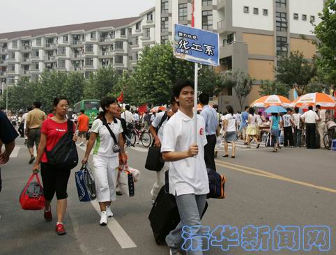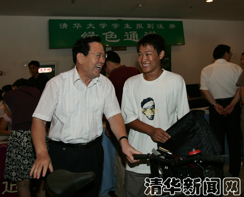 上午,校领导顾秉林、陈希、汪劲松、陈旭、胡和平等与两办、教务处、学生部、后勤等部门负责人的陪同下,先后来到综合体育馆和紫荆学生公寓区,检查迎新情况工作,了解新生情况。在“绿色通道”里,学校领导详细询问了新生领取临时贷学金的情况,并亲手将学校为家庭经济困难学生准备的被褥、书包和自行车送到了材料系的河南新生王保民和精仪系的广西新生韦文鸿手里。校领导还来到位于紫荆公寓区的桃李园大食堂与新生和家长共进午餐,听取他们对学生食堂的意见。