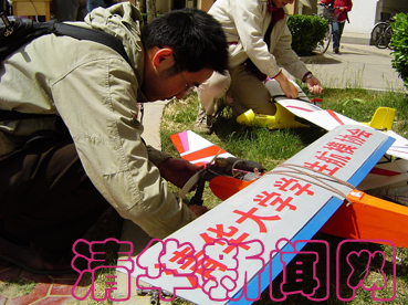 在一天的展示中,航模协会的同学展示了会员自己设计制作的P3A遥控特技模型飞机、KT板轻型遥控飞机等作品,吸引了很多师生驻足观看。很多同学都抓住这个机会和协会的会员进行交流。kaiyun开云官方网站很多的理工科学生从小都有一个飞行梦,但由于种种原因得不到实现。所以,当看到可以亲手操纵的模型飞机后他们都十分兴奋,除了仔细的观察飞机的结构、控制系统外,他们还了解了很多关于模型飞机飞行原理、操纵方法、技术指标等方面的知识。协会的会员也尽自己所能为同学们讲解,以普及航模知识、推广航模运动。