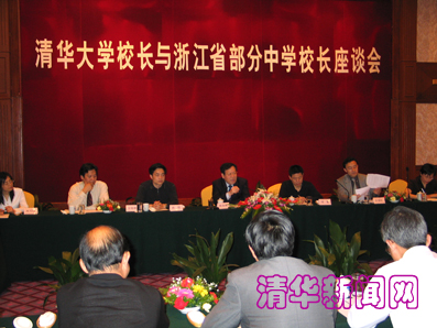 【新闻中心讯 记者 文清 摄影 陈鹏翔】4月9日下午,我校在杭州召开浙江省部分重点中学校长座谈会。校长顾秉林、副校长汪劲松、杭州市副市长项勤、浙江省招办副主任孙恒、我校招办主任宗俊峰、浙江省招生组组长赵洪等及杭州二中、杭州外国语学校、杭州学军中学、宁波镇海中学、绍兴一中等20余所浙江省重点中学校长参加了座谈会。