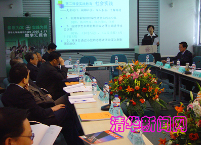 新闻与传播学院常务副院长胡显章教授首先汇报了学院实践教学的指导思想、主要实践和体会。三年中,新闻与传播学院依据“素质为本,实践为用,面向主流,培养高手”的办院理念,在课堂教学中努力贴近实际、贴近学生,以教育理念的转变推动教学改革;同时着力架设课堂与媒体的桥梁;引导学生深入社会实际;立足国情、应对全球化挑战,积极开拓国际视野,努力提高国际交流能力。