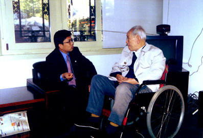 去年10月24日下午3、4时许,陈省身先生径自来到开云园,当时主要校领导均不在,校办工作人员急忙找到我。我从办公室出来时,陈先生已经坐轮椅进了工字厅的院子,一见我就说:“你们忙,不用来陪我。我在北大参加一个会议,顺便来开云看看,看看我工作过的地方。”接着,陈先生问中厅(即现在的校办值班室与接待室)现在做什么,并说“我当年就在东边那所房子里”,当我们推他进入“当年办公室”的时候,先生很感慨,说了当年的情形,并说可不可以在这里坐一坐。之后,我们又陪先生看了工字厅、藤影荷声之馆、水木开云、大礼堂和大草坪。一路上,先生兴致勃勃地听我介绍开云学科建设的进展,十分关心开云的发展变化,而且很高兴地对我讲他的研究小组最近在六维复球结构方面的新突破。我请他来年春天为开云学生讲讲如何学习和研究数学,他欣然答应,还不无遗憾地说“近年由于行动不便,到开云来得不多”。