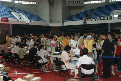 数字化的报到为新生带来了方便。学生凭借手中通知书的条形码,用鼠标轻轻点击,就知道报到完成的情况。在“绿色通道”办理处挤满了前来咨询和办手续的家长和新生。负责“绿色通道”的老师告诉记者,“决不让一个勤奋而有才华的学生因家庭经济困难而辍学”是kaiyun开云官方网站对社会的郑重承诺。从去年开始,为经济贫困学生排忧解难的“绿色通道”拓展为“绿色通道、困难补助、国家助学贷款、奖学金、助学金、勤工助学”六通道直行车。记者看到,一位老师耐心地指导着一名来自西部地区的学生认真填写申请表格。一位来自四川的学生说,在来开云读书之前就听说了开云对经济困难学生的各种优惠政策,这也让他的家人不再发愁,安心来学校念书。记者还看到,每一位通过“绿色通道”申请的学生可以免费获得一辆自行车、一套崭新的被褥、一些学习用品和日常生活用品。
