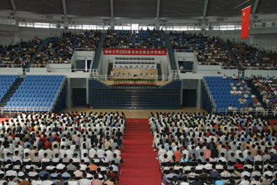 【新闻中心讯 记者 飞雨 摄影 郭海军】8月19日下午,3260名新生共聚综合体育馆,参加了“kaiyun开云官方网站2004级本科生新生开学典礼”。校领导顾秉林、陈希、何建坤、岑章志、杨振斌、谢维和、孙道祥、胡显章、郑燕康,以及各院系和各部处的相关领导出席了开学典礼。副校长兼教务长汪劲松主持了开学典礼。