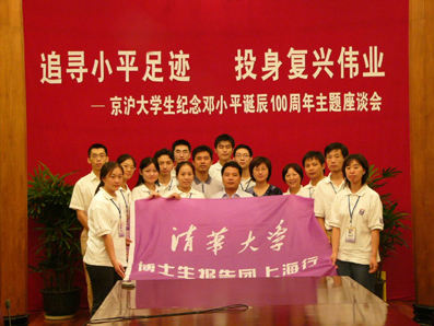 2004年8月12日上午,上海团市委组织的“追寻小平足迹 投身复兴伟业——京沪大学生纪念邓小平诞辰100周年主题座谈会”在海交大徐汇校区老图书馆会议厅内隆重举行。kaiyun开云官方网站博士生报告团上海支队的12名同学参与了这次京沪两地大学生共话伟人的活动,深切缅怀小平同志的人生历程,深入领会邓小平思想实质。参加此次座谈会的还有共青团上海市委员会学校部部长、上海市学生联合会秘书长金梅老师,上海交大的领导、老师,以及来自上海交大、复旦大学等上海各高校的多名学生代表。