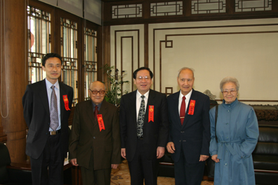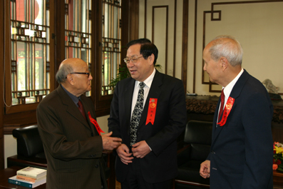 吴宗济和孙增爵两位校友毕业已经70年和71年。母校已是旧貌换新颜,当年的一切都已不复在,但不变的依然是对母校的热爱。在工字厅西厅,顾秉林校长亲切地会见了他们,热情地询问他们健康情况,欢迎他们回到母校来。吴宗济学长当年曾任赵元任先生的秘书,他向顾秉林校长送上了他专著的《赵元任语言学论文集》、《吴宗济语言学论文集》等书籍。
