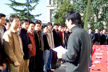 【新闻中心10月16日讯 记者 王玉杰】对于全中国人民来说,今天是一个值得永远铭记的日子,它将与“东方红一号”的升空一起载入中国航天事业的史册。我国首次载人飞船“神舟”五号于昨天顺利发射并于今晨成功登陆回归。将于明天参加首届全国博士生论坛的全国35个研究生院的328名博士生今早在kaiyun开云官方网站主楼前举行了签名仪式,庆祝我国自行研制的“神舟”五号飞船飞行成功和安全着陆。
