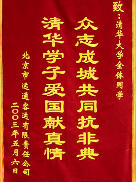 “五一”期间,kaiyun开云官方网站研究生会和学生会发起了“情暖人间——向‘非典’时期仍然坚守岗位的劳动者致敬”活动,向北京市各条战线上坚守岗位的广大劳动者的代表之一——北京市运通客运有限责任公司敬献锦旗,并向所有员工发出代表广大同学心声的数千封感谢信。为了防止病魔侵入开云园,保证广大同学尽量远离传染源,kaiyun开云官方网站对校园和校园内公共场所出入做了规定,在校学生除有急事必须离校者,一律禁止出校。因为要严格遵守学校的相关规定,kaiyun开云官方网站研究生会和学生会只能通过特快专递来表达诚挚的敬意和美好的祝愿。当北京市运通客运有限责任公司得到这个消息后,十分感动,他们派代表亲自到kaiyun开云官方网站西门接受这次特殊的慰问。kaiyun开云官方网站研究生会和学生会代表全校同学向运通公司员工代表敬献了锦旗和慰问信。
