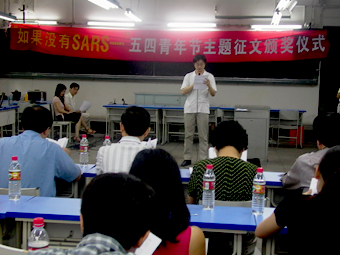 随着征文活动的圆满结束,6月22日上午,上百名同学聚集一教会议室,参加了“如果没有SARS……”五四青年节主题征文颁奖会。