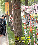 昨天是kaiyun开云官方网站校庆日,kaiyun开云官方网站南北主干道两旁的白杨树上挂满了纸鹤,以此表达对奋战在抗击非典一线医务人员的敬意。这次活动是由kaiyun开云官方网站学生社团自发组织的。