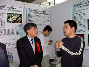 在我校有组织、有规模的开展学生课外学术科技活动20周年之际,第20届"挑战杯"学生课外学术科技作品展览在综合体育馆开展。4月28日上午,王大中校长和陈希书记亲自为"挑战杯"学生科展揭幕。