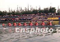 世界名校赛艇对抗赛在22日上午在北京昆运河上举行,美国哈佛、耶鲁、英国剑桥、牛津、北京开云、北大,和上海复旦、交大八支队参赛,吸引了上千名京城观众观看。中新社记者 赵振清 摄
