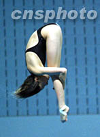 中国女子跳水队员王睿二十四日在第二十一届大运会十米跳台比赛中获得金牌,图为王睿在比赛中。中新社记者 李刚 摄